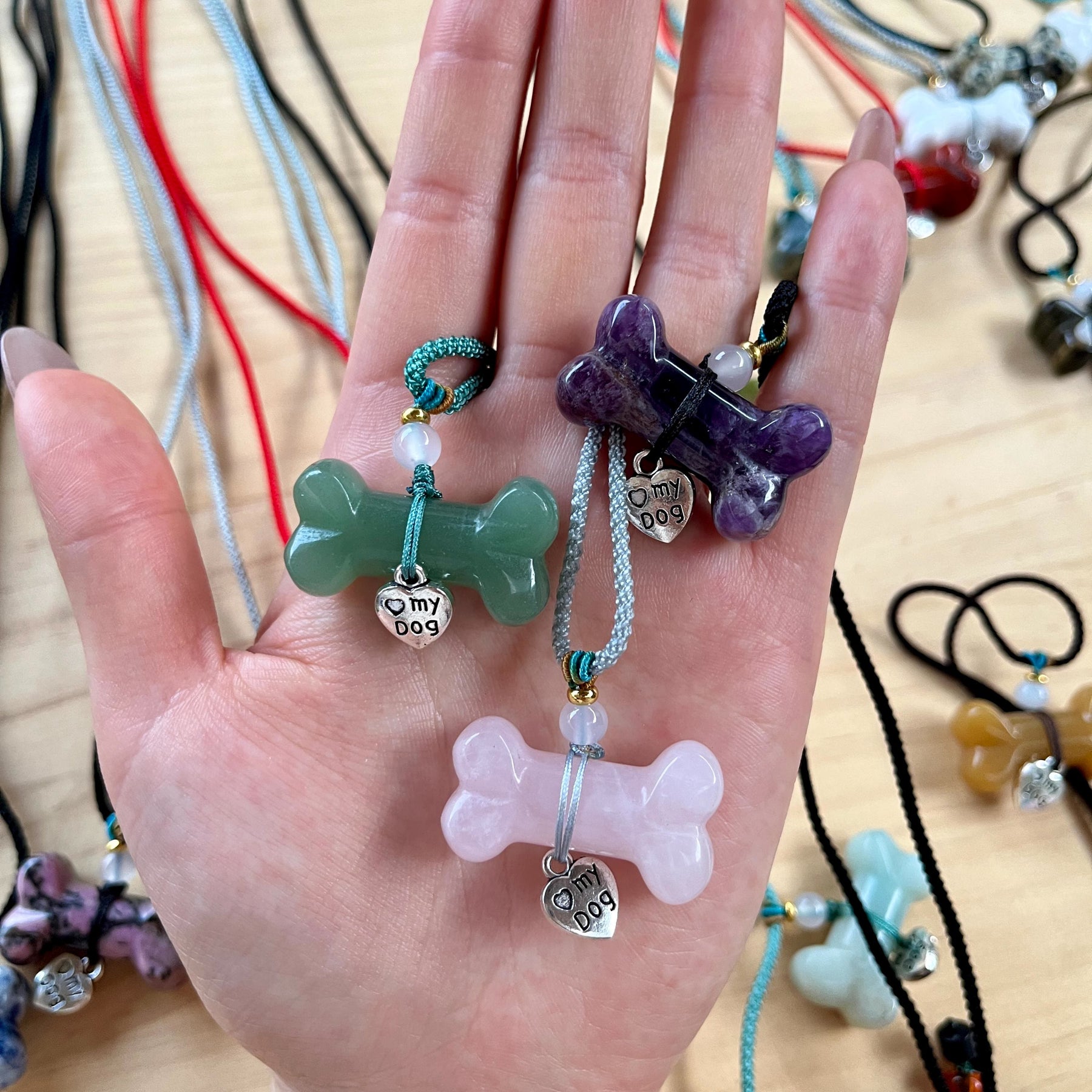 Olivenorma Naturstein-Knochen-Haustierhalskette - Grüner Aventurin & grünes Seil - image 15