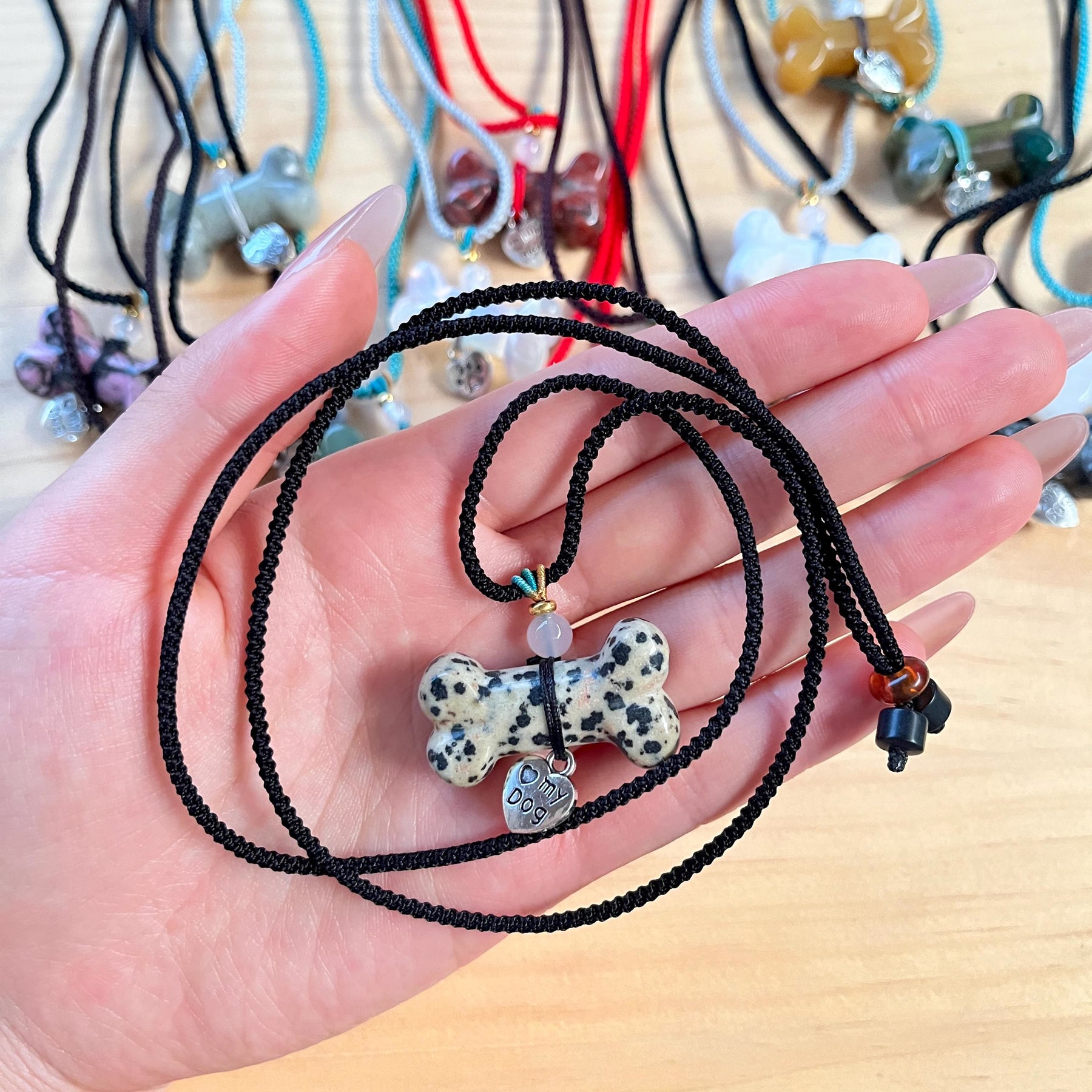 Olivenorma Naturstein-Knochen-Haustierhalskette - Rhodonit & Schwarzes Seil - image 20