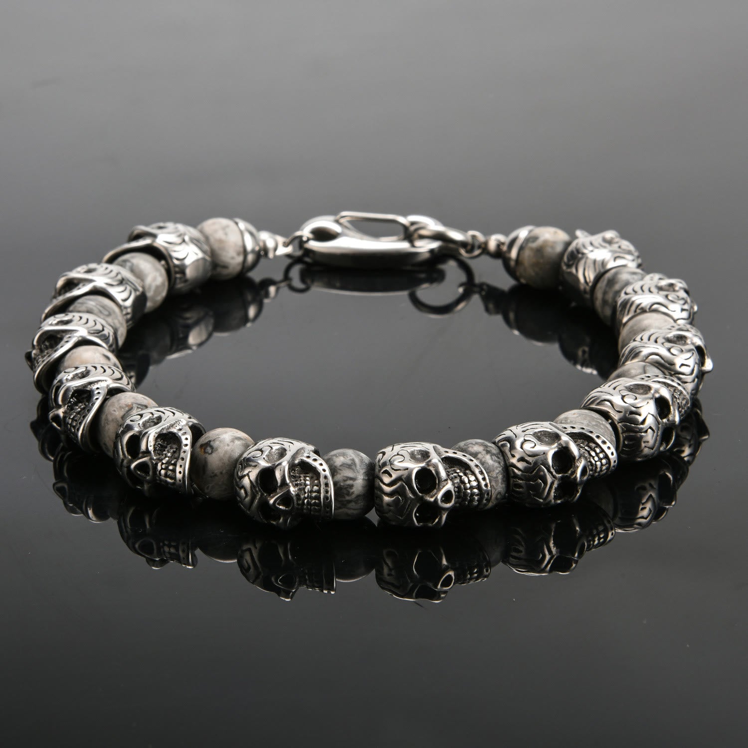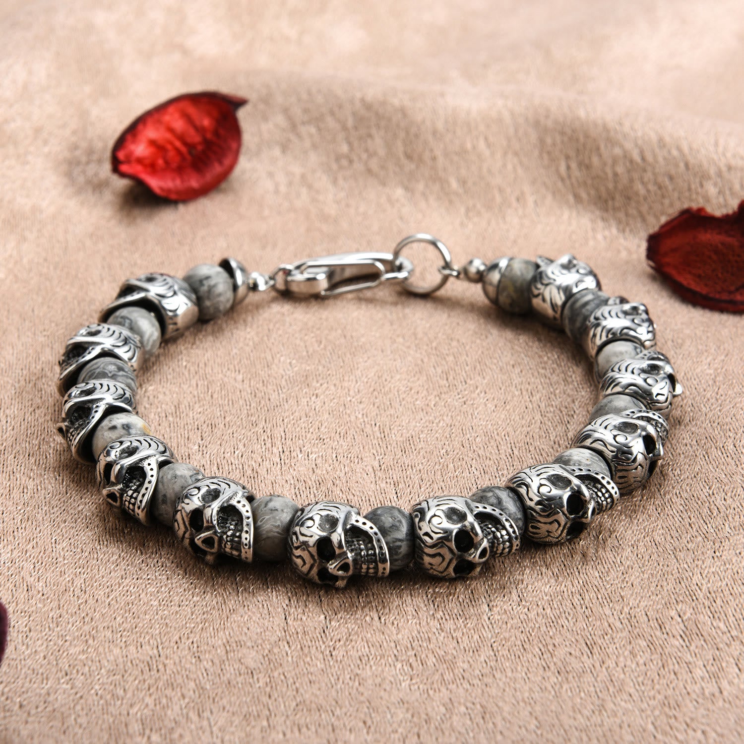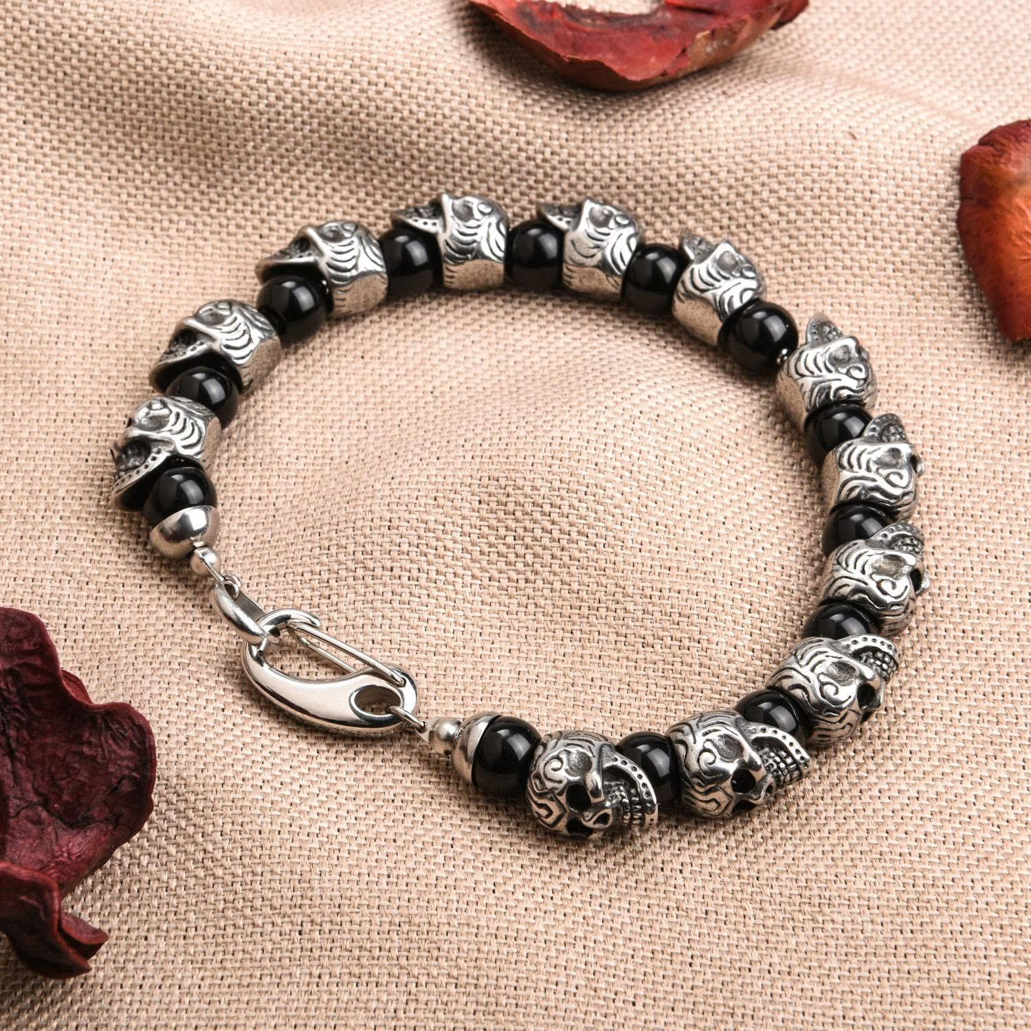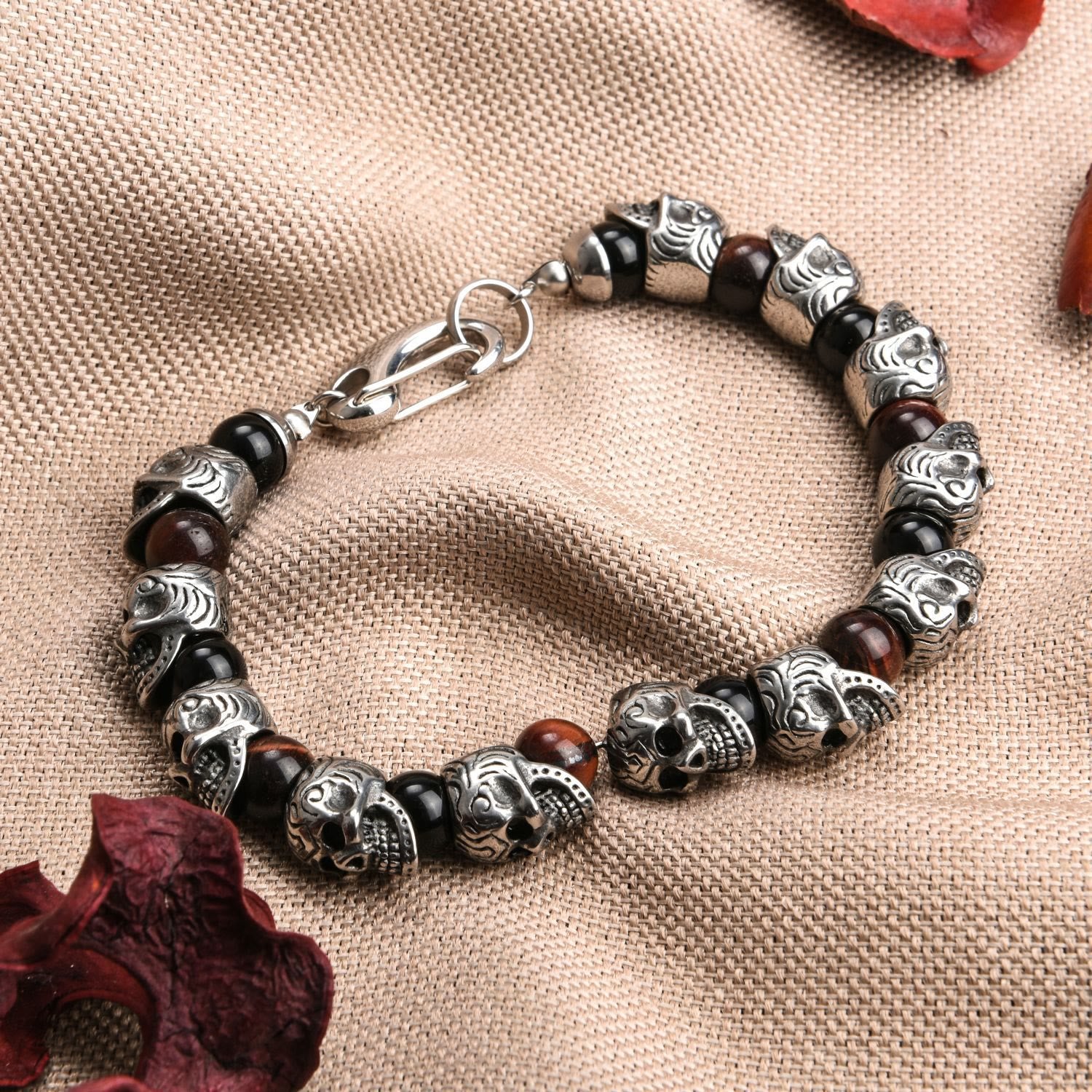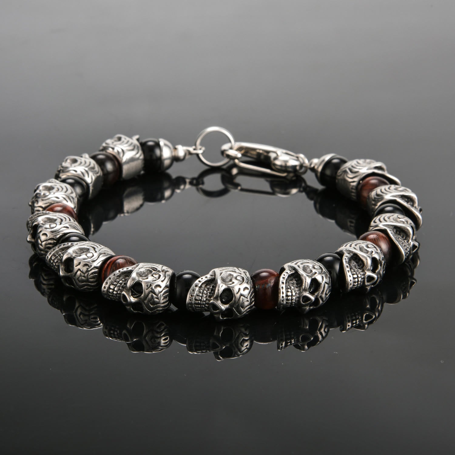 - Echte Edelsteine: Tigerauge, Grauer Jaspis, Schwarzer Onyx, Hämatit