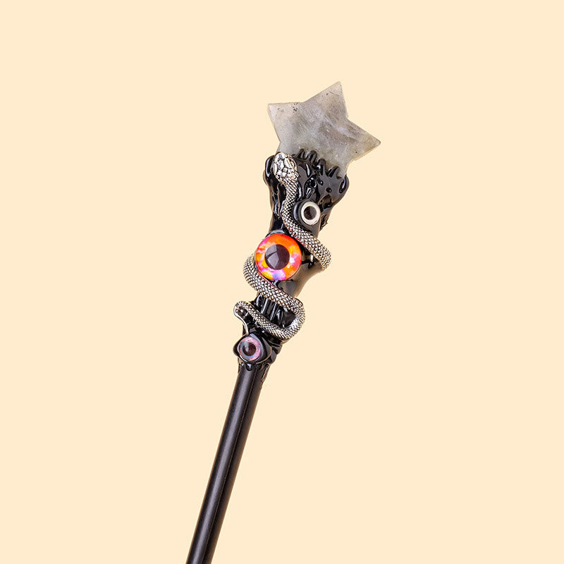Handgefertigt und einzigartig: Jeder Zauberstab zeichnet sich durch kunstvolle Details, Metallelemente im Antik-Stil und natürliche Steinvariationen aus – kein Stück gleicht dem anderen.