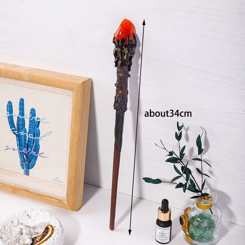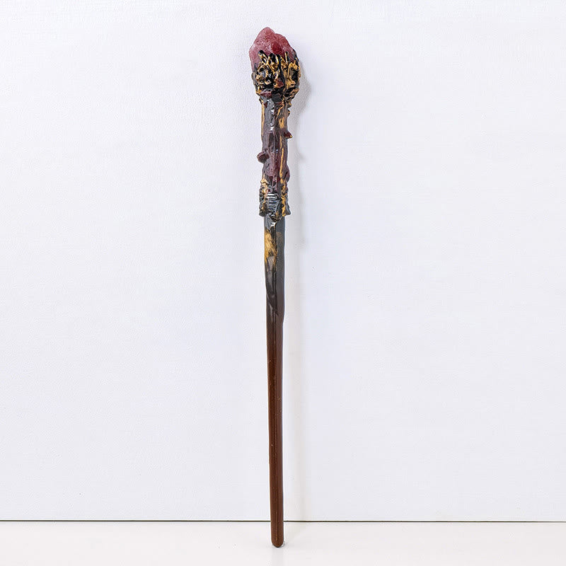 Handgefertigt und einzigartig: Jeder Zauberstab zeichnet sich durch kunstvolle Details, Metallelemente im Antik-Stil und natürliche Steinvariationen aus – kein Stück gleicht dem anderen.