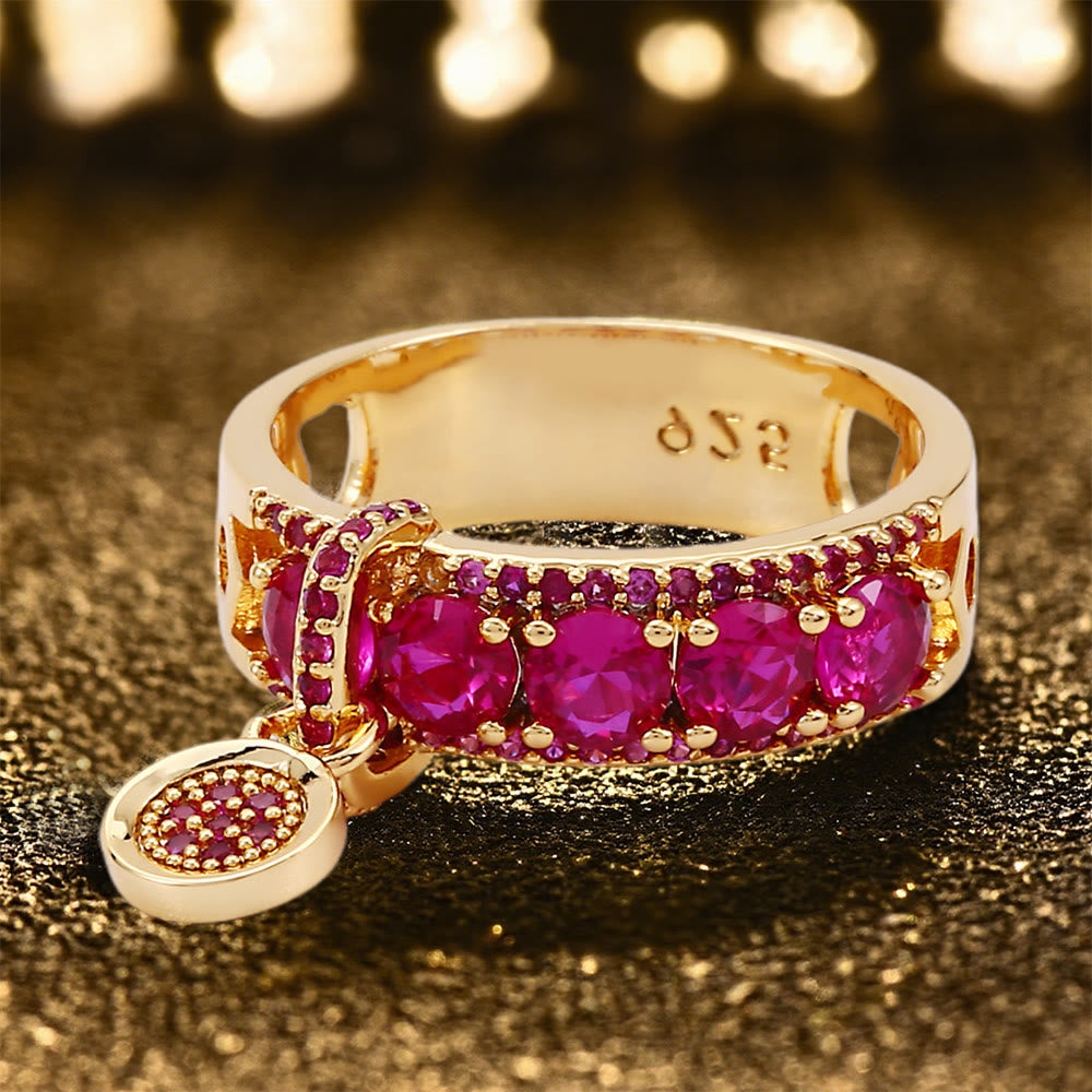 Mit seinem markanten Gürtelschnallen-Design und den leuchtend funkelnden Zirkonia-Steinen fängt jede Facette das Licht ein wie ein schimmernder Stern am Nachthimmel. Der baumelnde Anhänger verleiht Bewegung und Geheimnis und erinnert an Hekates rätselhafte Symbole. Dieser Ring ist Talisman und Schatz zugleich.