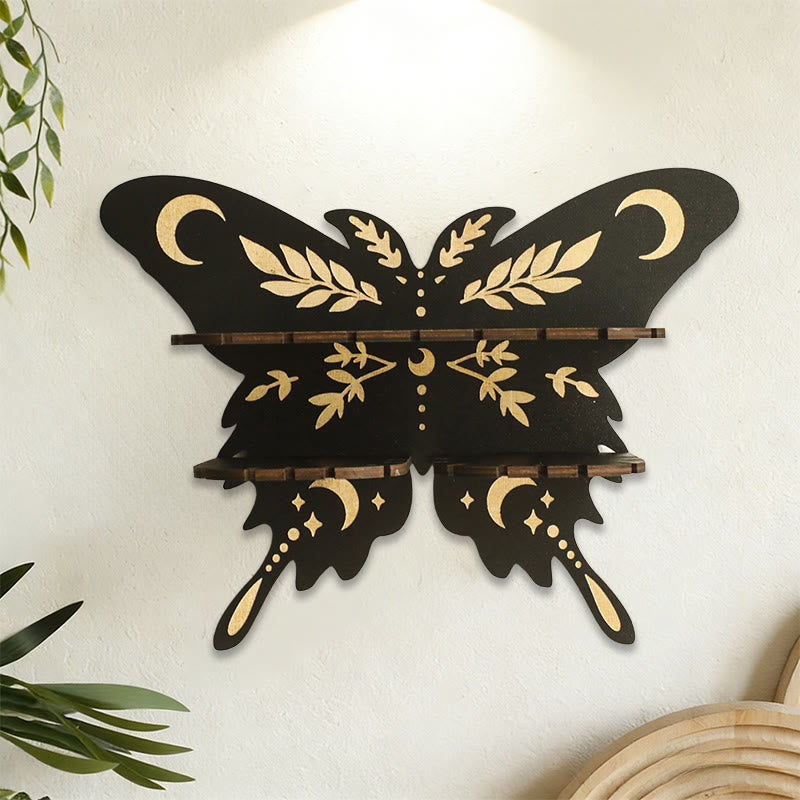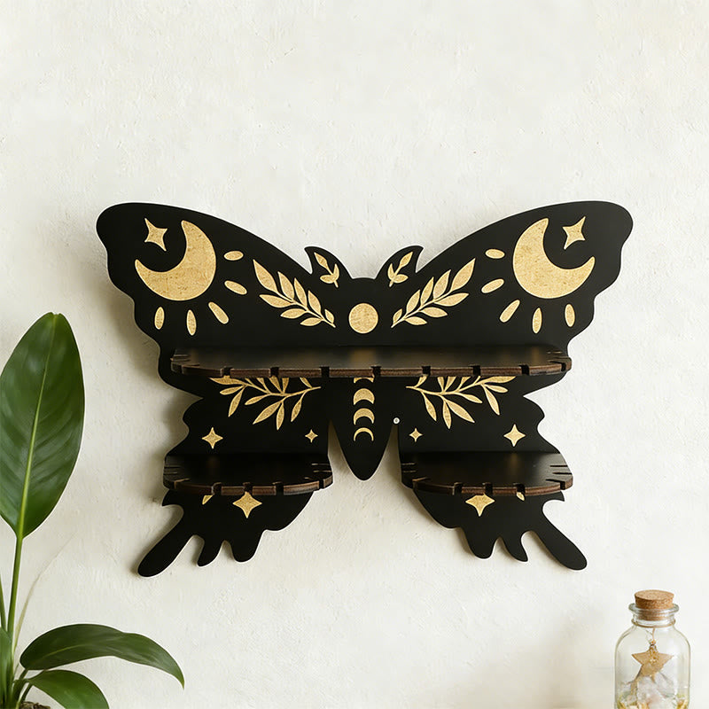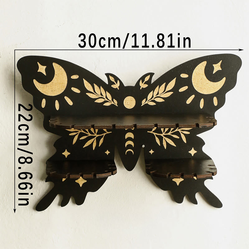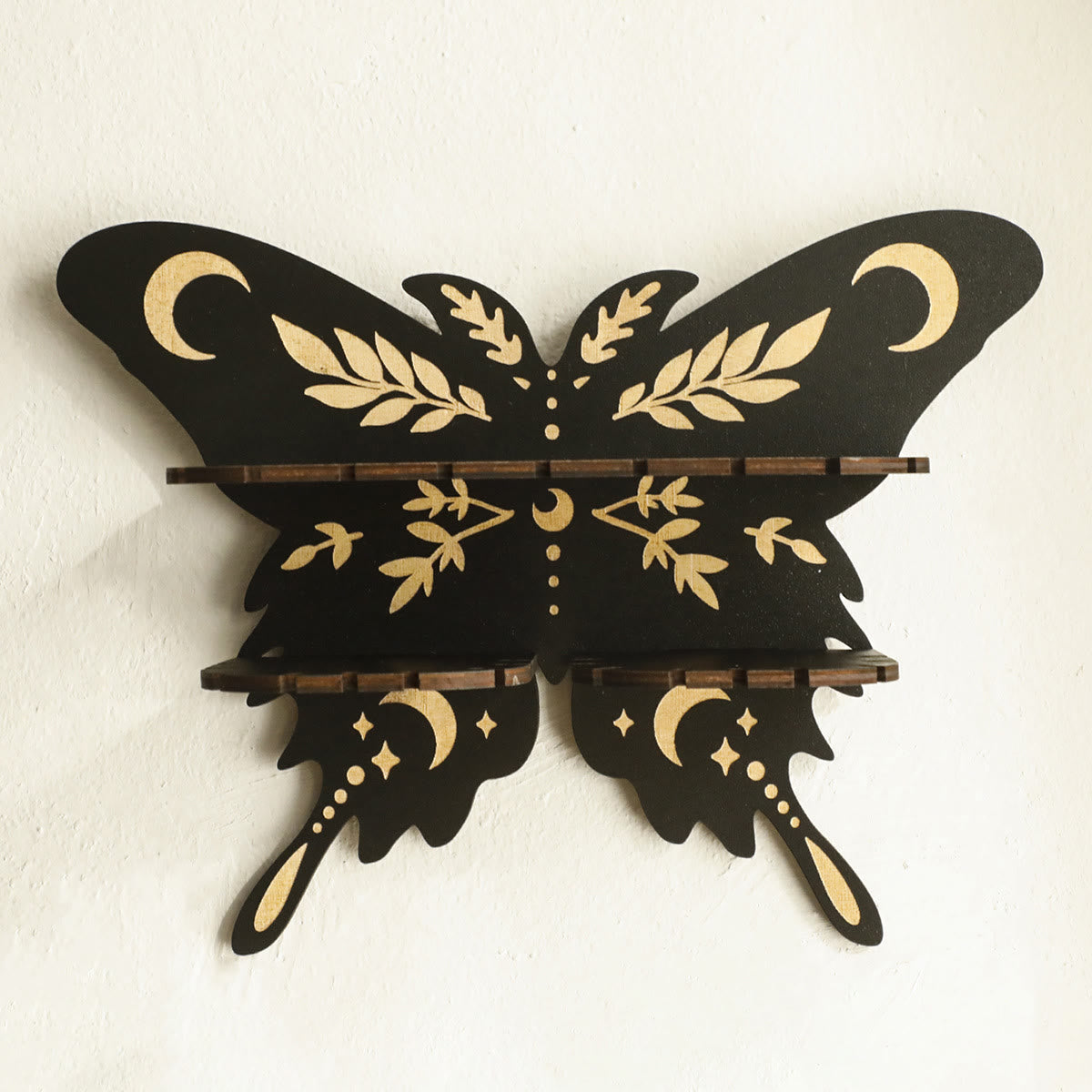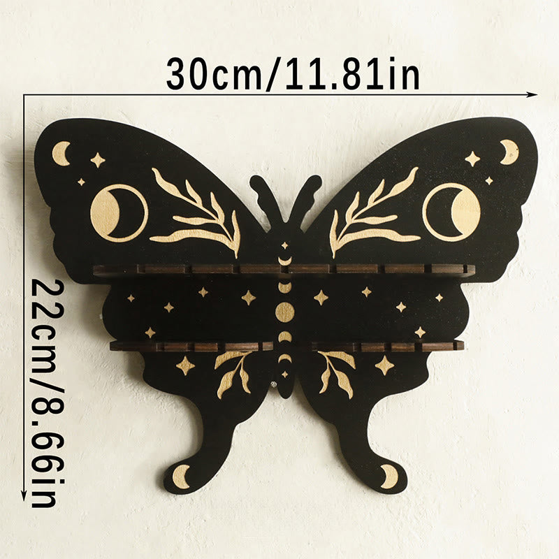 - Name: Olivenorma Holzregal mit Mond-, Stern- und Schmetterlingskristallen