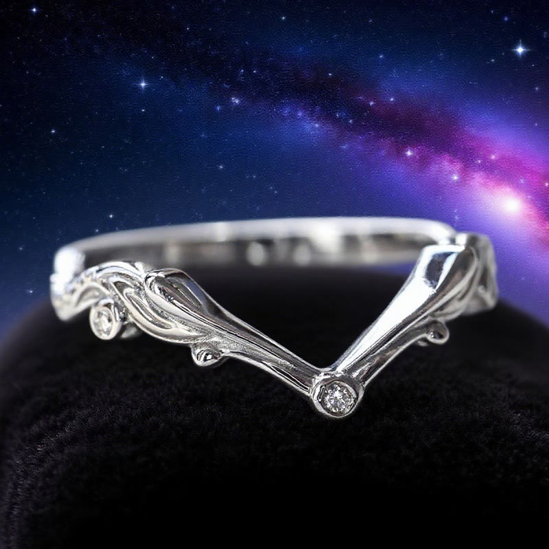 Nyx, die griechische Göttin der Nacht, wirft ihren himmlischen Mantel über den Himmel – ein Wandteppich aus Sternbildern und silbernem Sternenstaub. Dieser Ring fängt einen Teil ihrer Magie ein: Der Beryll im Marquise-Schliff leuchtet wie ein gefallener Stern, eingebettet in mondbeschienene Ranken, während die umgebenden Zirkone mit Sternbildern pulsieren, denen nur Nachtschwärmer nachjagen.