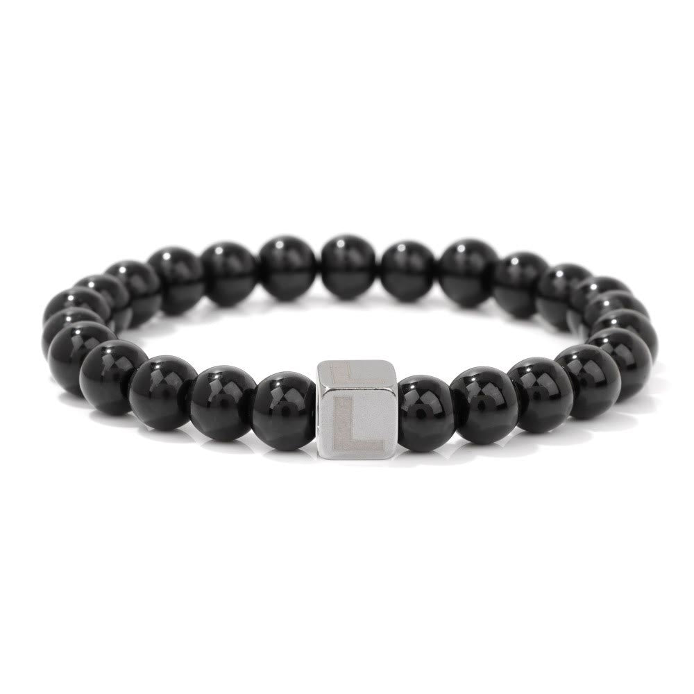 Olivenorma – Perlenarmband aus Obsidian mit Initialenwürfeln, 8 mm - Y - image 28