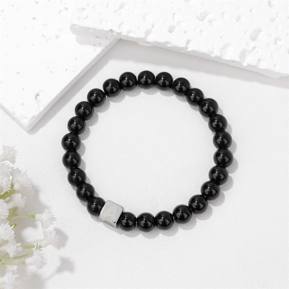 • Name: Olivenorma 8 mm Initialen-Würfel-Obsidian-Perlenarmband