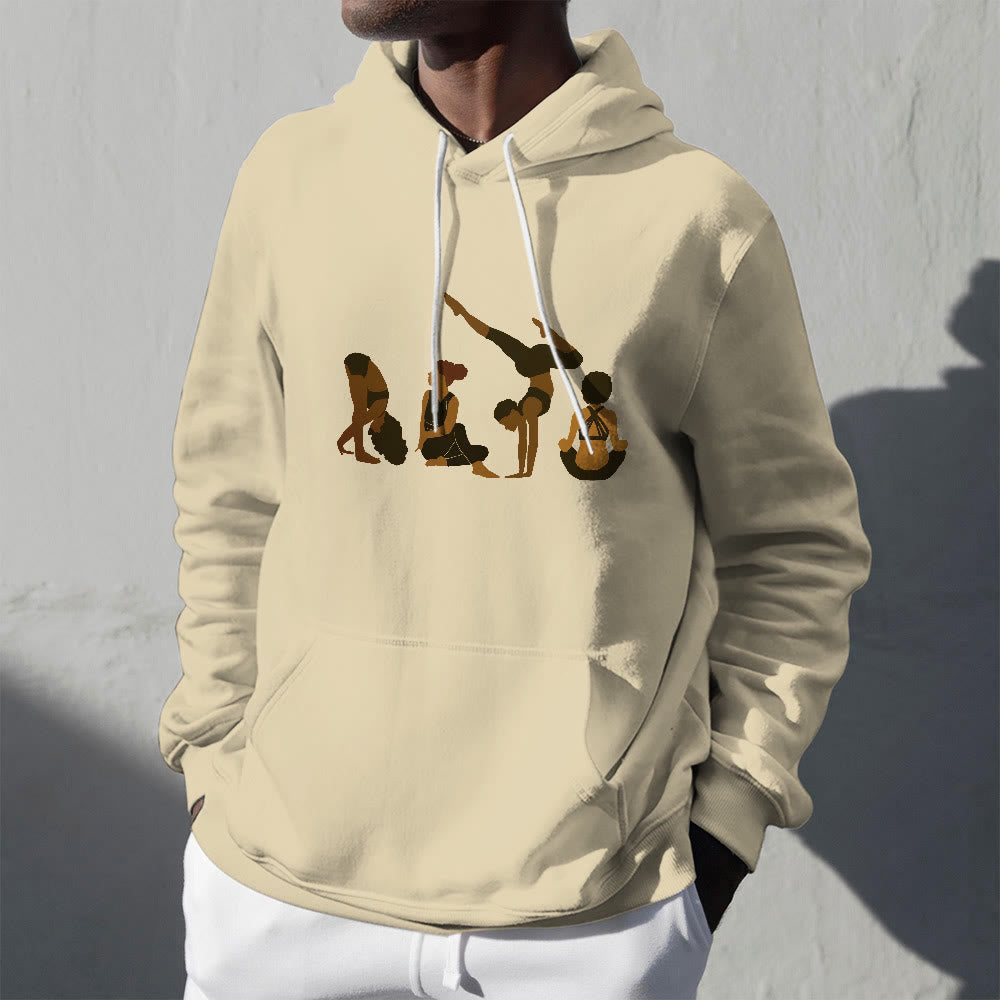 Genießen Sie achtsame Bewegung mit unserem Unisex-Hoodie. Der einzigartige Aufdruck progressiver Yoga-Posen symbolisiert Wachstum und Gleichgewicht. Er ist bequem und stilvoll, bietet eine entspannte Passform und eine vielseitige Fronttasche.